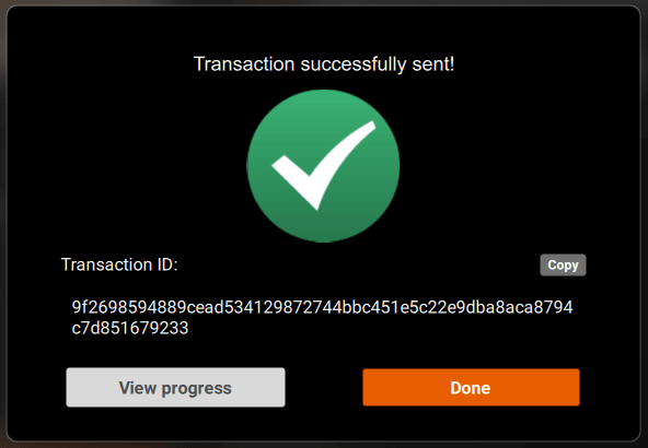 10) Next, you will see the Transaction successfully sent! dialog.
